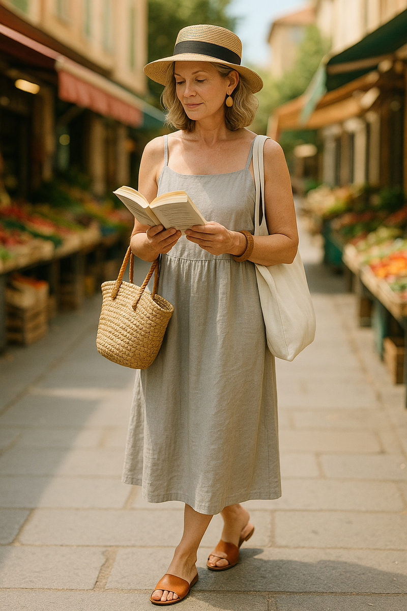 Вы замечаете, что в жару хочется снять как можно больше одежды, но выглядеть хочется ухоженно и элегантно. Вы хотите летние наряды, в которых комфорт сочетается с вашей женственностью, без лишней «модности». Вы стремитесь к лёгкости, дышащим фактурам и простым, но выразительным деталям. В этой статье — 7 образов с тремя визуалами каждого, чтобы вы точно нашли свой. Мы стараемся делать полезный и честный контент — если вам откликнулось, оставьте комментарий или лайк. Это важно для нас ♥️. Секрет – в натуральных тканях: лён, хлопок или вискоза — они пропускают воздух и дарят прохладу. В жару хотите дышать и двигаться — широкие брюки, кюлоты, струящиеся ткани — ваш выбор. Практично, скромно и очень женственно — платье‑рубашка закрывает руки и хорошо проветривается. Понадобится, когда солнце сядет или в помещении включат кондиционер. Миди-юбка удобна, закрывает ноги, не жарко. Футболка — простой, стильный верх. Один цвет — всегда элегантен. В летнюю пору это выглядит свежо и гармонично. Са