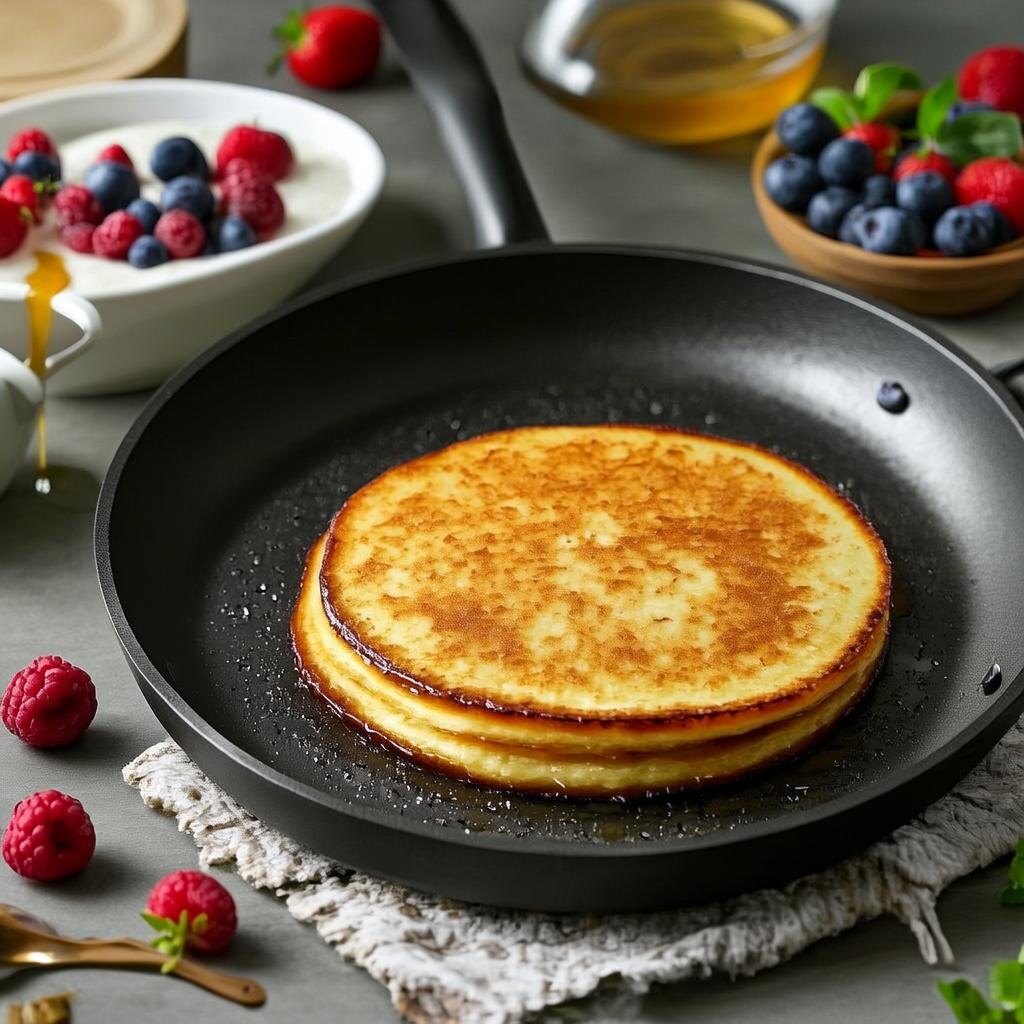Этот рецепт — настоящая находка. Он выручает, когда хочется чего-то сладкого и сытного, но без муки, сахара и прочих «тяжёлых» ингредиентов. Подходит даже тем, кто следит за фигурой или готовит завтрак на скорую руку. Всё. Больше ничего! Ни муки, ни разрыхлителя, ни сахара — и при этом получается вкусно, сочно и очень нежно. Готовые панкейки подавайте сразу — тёплыми.