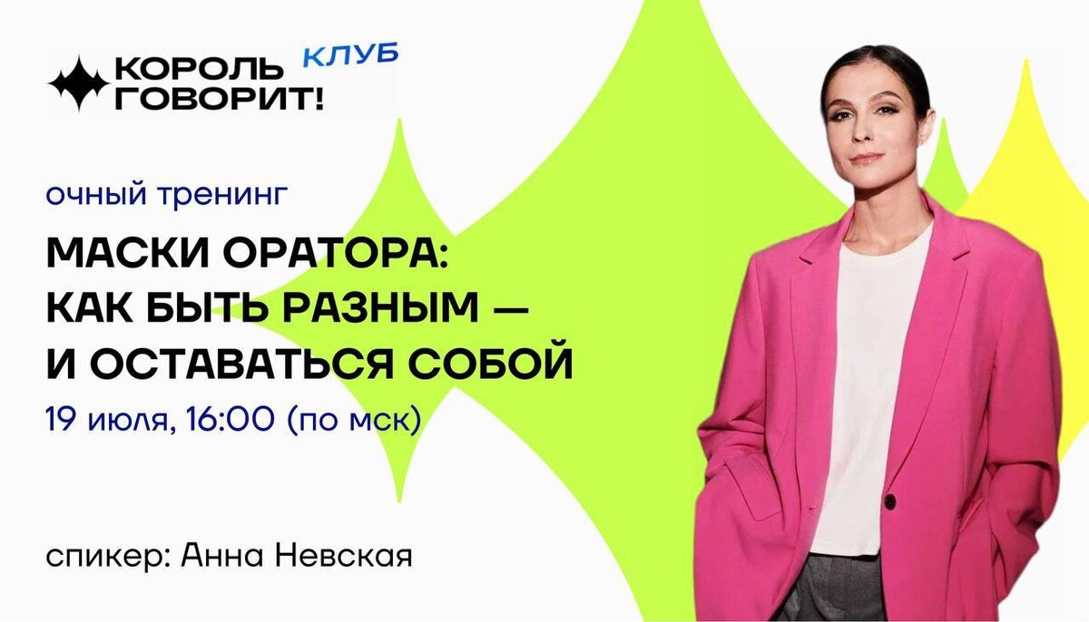 На сцене нет одного правильного образа! Кто вы для аудитории сегодня? 🎙 Уверенный эксперт? 🎪 Ироничный рассказчик? 🔥 Харизматичный лидер? 😎 Хитрый провокатор? Приходите на наш офлайн-тренинг и узнайте, как быть собой и восхищать аудиторию! На нашем очном тренинге: ✅ Разберём 6 ключевых масок оратора: от клоуна до диктатора ✅ Поймём, как управлять вниманием через стиль, речь и поведение ✅ Научимся выбирать нужную подачу под тему и цель ✅ Раскроем речевой потенциал через практику И это еще не всё! 🔥 Вы не только узнаете, как говорить — вы заговорите! Тема выступления придет после регистрации, а на тренинге вас будет ждать — сцена, микрофон и много практики! Когда: 19 июля (сб) в 16:00 Где: ул. Смоленская, 8 (AZIMUT Сити Отель Смоленская) Стоимость участия: 3500 рублей 🎙 Спикер — Анна Невская, тренер по голосу и речи, публичным выступлениям и работе в кадре Не теряйте времени — записывайтесь на тренинг! 👉 Оплатить участие