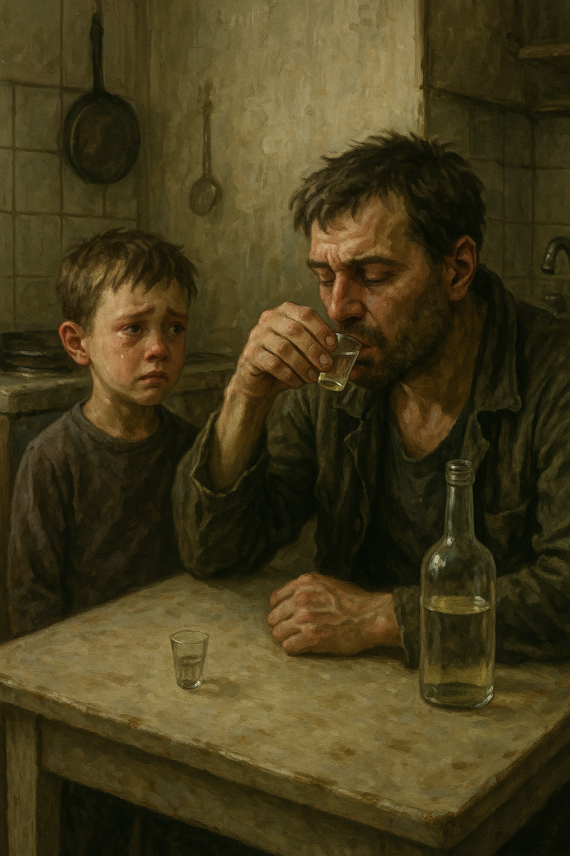 Сережа кивнул, глядя в пол. Он понимал слишком многое для своих двенадцати. Понимал отчаяние отца, эту черную дыру, в которую тот провалился после ухода Елены. Олег любил ее безумно, всю жизнь, с самого института. Она была его солнцем, его воздухом. Ее измена и уход не просто ранили – они разрушили его мир до основания. Сережа видел, как отец пытался держаться первое время, ходил на работу, готовил ужины, спрашивал про уроки. Но пустота в доме, в его глазах, росла с каждым днем. И он нашел способ ее заполнить – бутылкой. Дешевой, доступной, дающей иллюзию тепла и забвения. Ценой стала репутация, работа и, самое страшное для Сережи, – уважение сына. Любовь-то никуда не делась, она была, но она тонула в море стыда, страха и отчаяния.