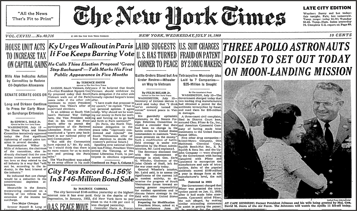 Новостная лента газеты "Нью-Йорк Таймс"ю Сначала все новости, связанные с космонавтикой. А это практически Аполлон-11, а потом перевод двух статей.