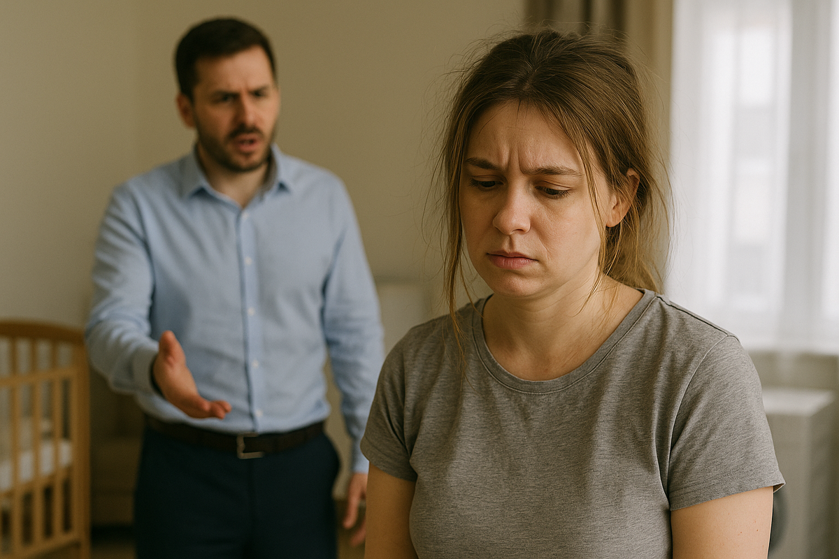 Алёна замерла у раковины, где мыла детскую бутылочку. На ней был поношенный домашний костюм, волосы небрежно заколоты невидимками, на лице — следы бессонной ночи. Годовалый Данилка висел на руке, капризничал, тянулся к маме.