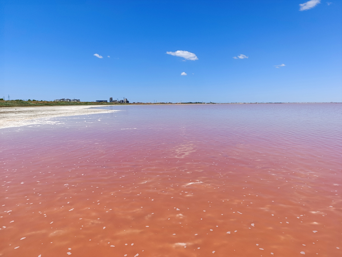 придаёт воде розовый или красноватый оттенок. Всем думаю известно, что он содержится в той же морковке. Водоросли вырабатывают этот пигмент для защиты от интенсивного солнечного света и высоких температур, именно поэтому и советуют ехать на озеро в июле, когда в Крыму стоит жара.