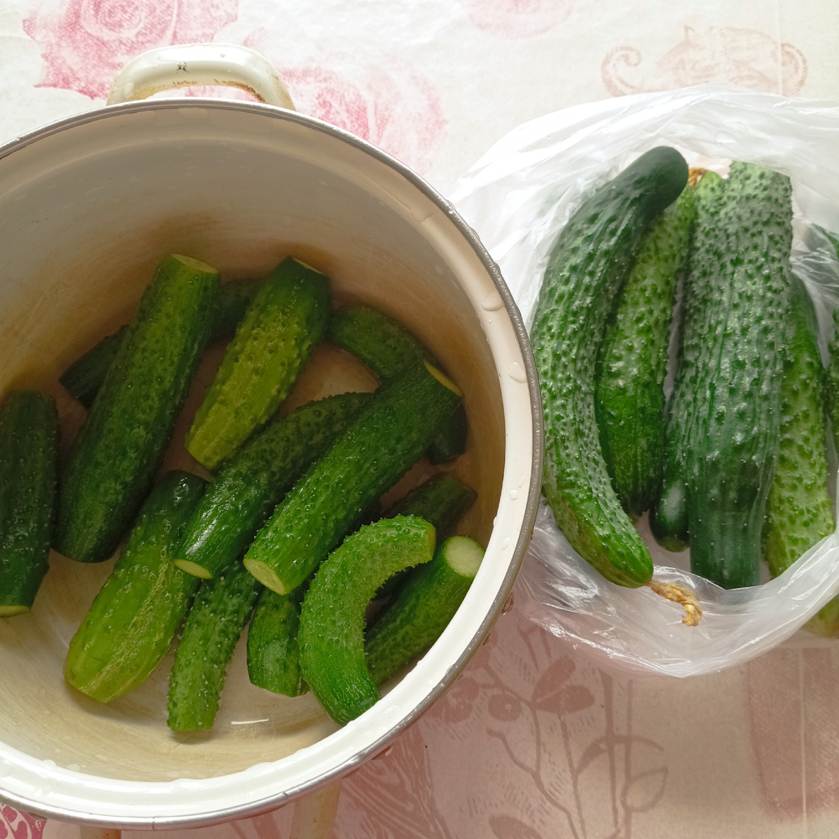 И опять день разделён на две половинки. Но какие это были половинки! Время почти девять часов вечера, а я ещё не все дела сделала. Вот лежу, отдыхаю за написанием статьи)). Придётся на время прерваться и пойти на кухню. Привезла урожай огурцов)). Те, что слева, надо закрыть в 0,7 л банку. Справа оставила на еду.