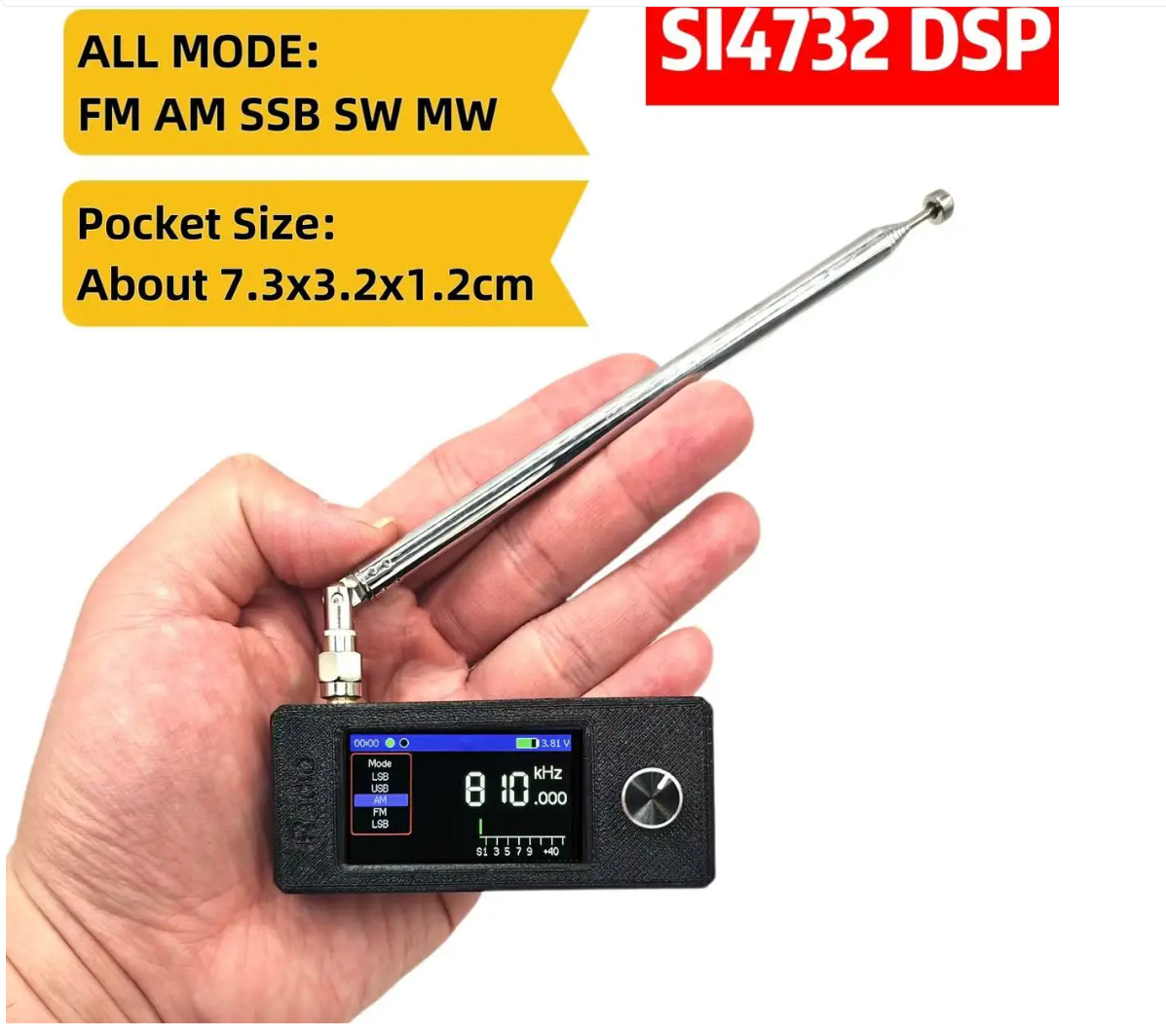 Артикул на Aliexpress: ALI30106111 Карманный радиоприемник SI4732 DSP ATS MINI V2 Современный, компактный и мощный радиоприемник с поддержкой всех основных диапазонов вещания! Основные особенности: • ✅ Поддержка всех режимов: FM, AM, SW, MW, SSB (USB/LSB) — слушайте все, от местных радиостанций до международных коротковолновых передач. • ✅ Цветной IPS-дисплей 1.9" с высоким разрешением 170x320 — четкое отображение частоты, режима и заряда. • ✅ МикроконтроллерESP32-S3 — стабильная работа и поддержка обновлений прошивки. • ✅ Карманный размер: всего 7.3 × 3.2 × 1.2 см — легко брать с собой в путешествия и походы. • ✅ Встроенный аккумулятор 800 мАч — до нескольких часов автономной работы. • ✅ Удобный интерфейс управления с одной кнопкой и поворотным энкодером. • ✅ Мощный встроенный динамик 1 Вт + усилитель для наушников — громкий и четкий звук как без наушников, так и в них. • ✅ AGC/ATT и регулировка яркости экрана — комфортное прослушивание в любых условиях. Характеристики: • Модель: ATS
