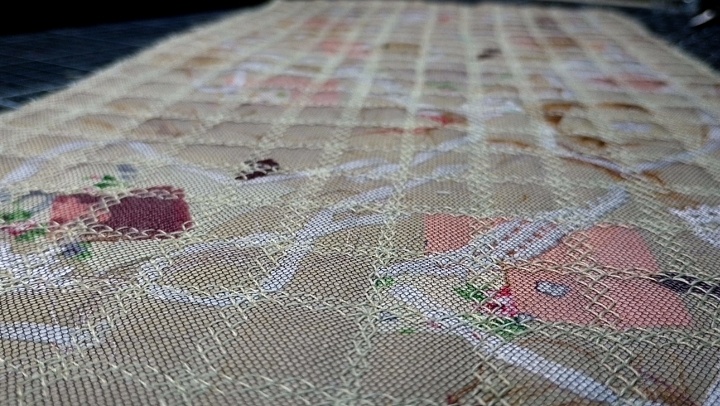 Применение закрепляющей сеточки - это не обязательное условие, хотя и более распространенный вариант. Лоскуточки, приклеенные на флизелин, можно сразу закрепить частой, заполняющей стёжкой😉