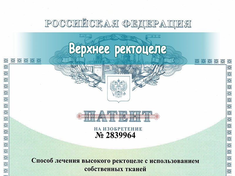 Одной из самых распространённых родовых травм связочно-фасциального аппарата малого таза является дефект крестцово-маточных связок в сочетании с задним верхним поперечным дефектом, то есть отрывом ректовагинальной перегородки от шейки матки сзади. Эти разрывы становятся причиной верхнего ректоцеле или энтероцеле. Запатентованная методика позволяет провести реконструкцию этого отдела с помощью собственных тканей через влагалище.