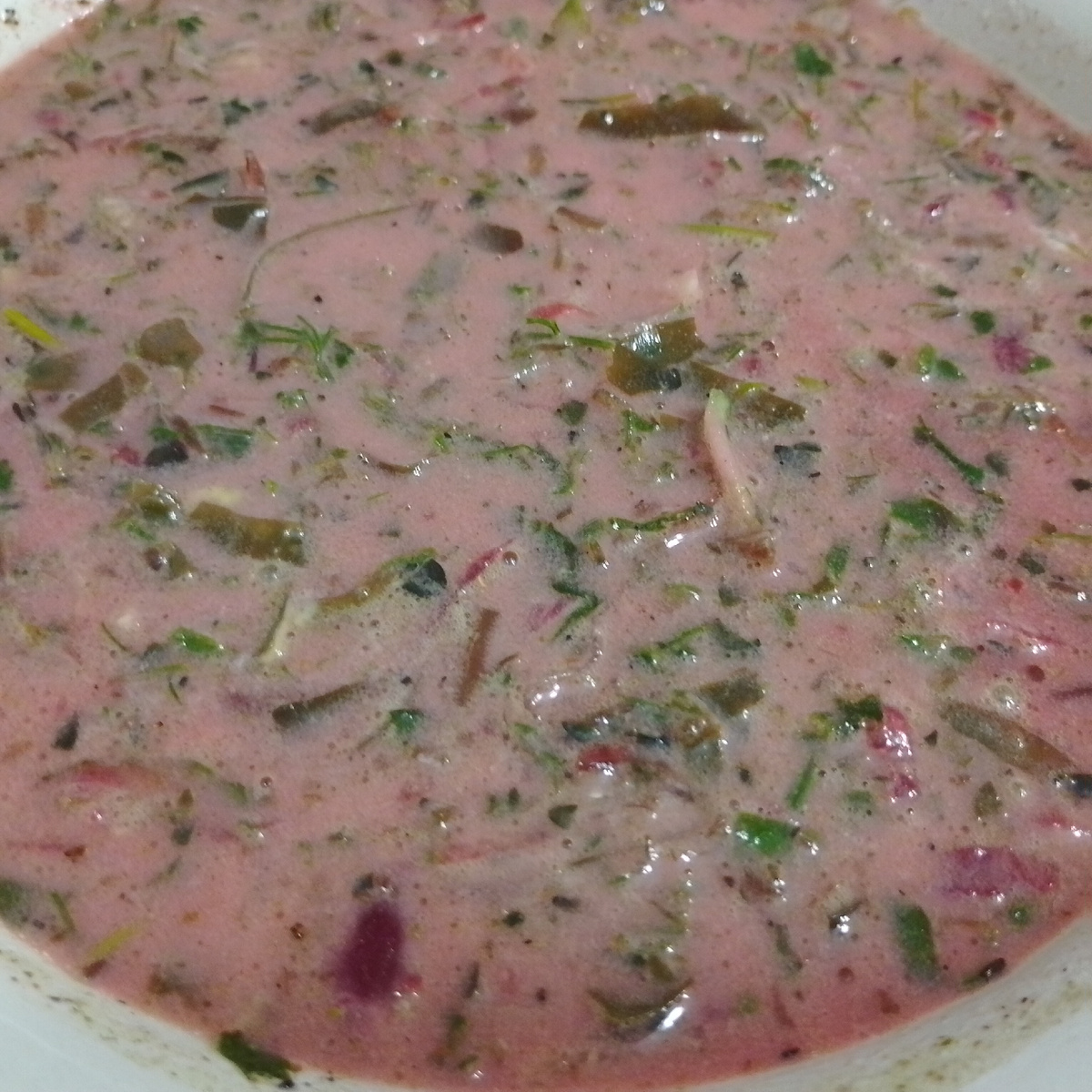 #ГедеоноваСтряпня, #НизкаяКухонька, #Ботвинья, #ХолодныеСупы, #ЛетнийСезон, #Квас, #Ботва, #Рыба Изготовил наконец ботвинью примерно правильную. По своей традиции - здесь микс разных рецептов. Берём собственно любую ботву - у меня любимая свекольная, лучок-укропчик и портулак. Промываем её, нарубаем и ненадолго завариваем кипяточком Когда обварится, смалываем в пюре Берём отваренную молодую свекловь от той самой ботвы и сырой младой огурчик Истираем их на крупной тёрке Цельные тмин и кориандр обжариваем на сухой сковородке и стираем в порошок Собираем основу ботвиньи - не забываем доложить морской капусты и рыбки - у меня банальная селёдка Подготавливаем заливки и добавки Овсяный квас Айран, медовуха и ягодно-травяной квас Сметана Горчичка (не успел сделать свою) Соевый соус Добавляем все добавки и заливаем разными жидкостями Не забываем про поджаренный черный или серый хлебец Перемешиваем и вкушаем