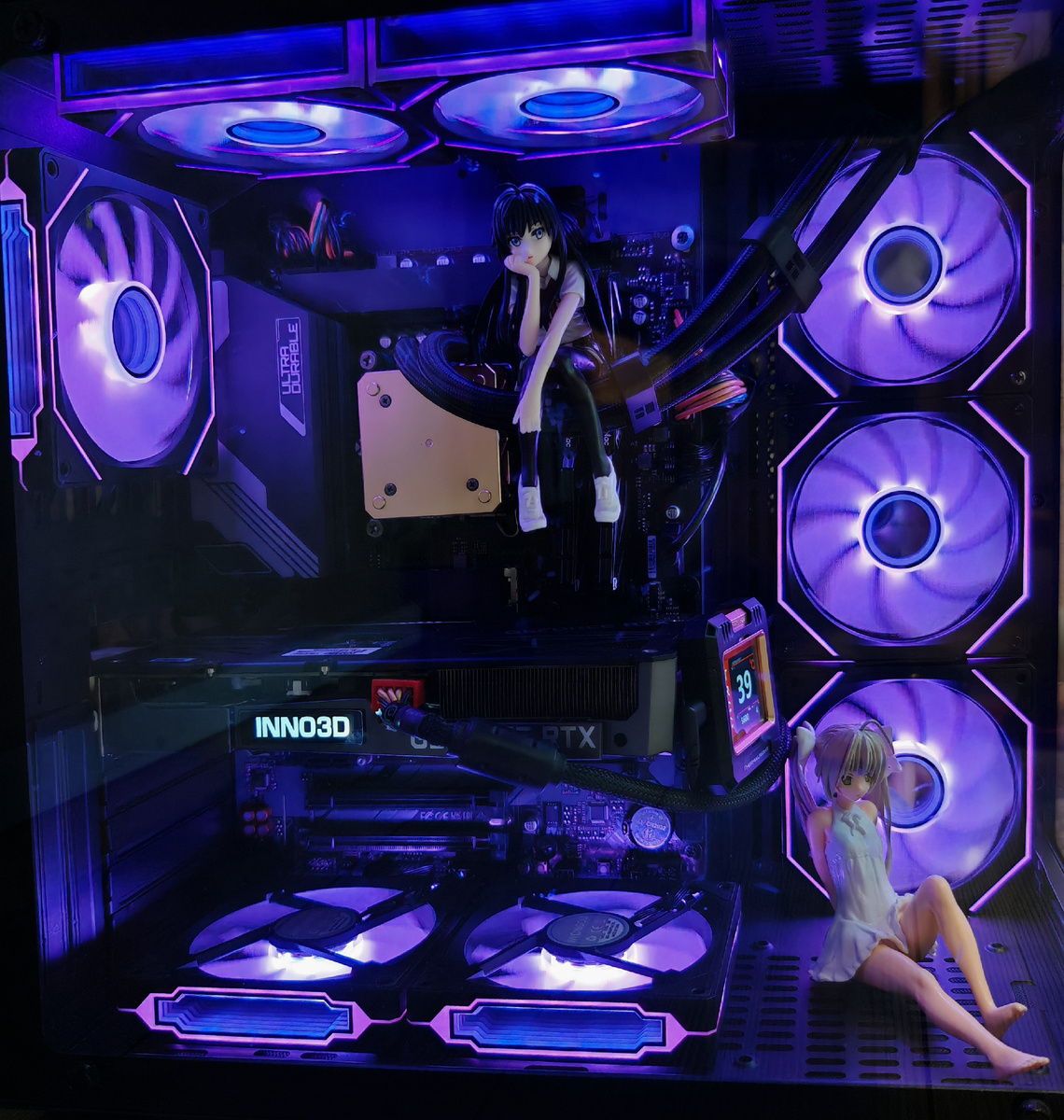 Красивая водянка с мониторчиком, на который можно загрузить любую информацию, картинку, видео и тп. В общем шик. Минус, идет без винтов, а то, в идеале, 4 винта на вдув. И тоже деньги... обошлась она мне в 6750 т.р. Могу сказать, что охлаждает разогнанный 14600к очень неплохо, под стресс тестами и тп, держит 84-90гр. В играх в 4к в среднем 72гр.
