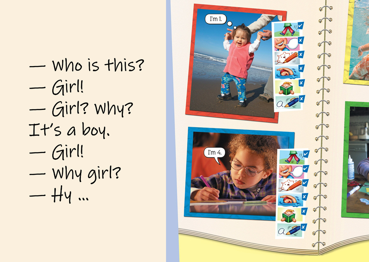 — Ну фломастер же розовый в руке, значит, девочка :)