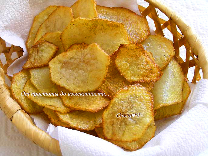 любые пряности и травы по желанию Приготовление: Картофель очистите, тонко нарежьте слайсами с помощью овощерезки. Разогрейте растительное масло и жарьте картофель небольшими партиями до румяности. Выкладывайте на бумажное полотенце, чтобы избавиться от лишнего масла. Затем выложите в большую чашу, посолите, поперчите, добавьте пряности, хорошенько перемешайте/встряхните и подавайте. Приятного аппетита! Вам также могут понравиться:
