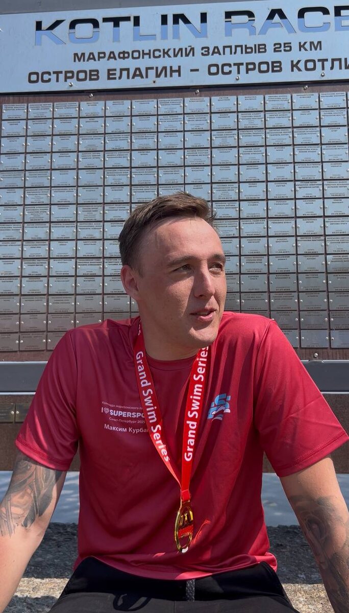 Марафонский заплыв KotlinRace 25 km от Санкт-Петербурга до острова Котлин. Серия 2. Было легко до момента, пока не стало тяжело 14 июля в 5:20:26 Курбан Максим стартовал от берега Елагина острова в сторону Кронштадта. Скорость на протяжении всей дистанции разнилась, и Максим, стартовав в одно время с Сергеем Колычевым, то чуть догонял, то чуть отставал от своего коллеги по марафонскому цеху. По-видимому, представитель школы I Love SuperSport испытывал тактику и свой организм перед предстоящим ещё более сложным испытанием, которое ждёт нашего героя уже через 3 недели. И как сказал Максим: «Было легко до момента, пока не стало тяжело». Следует отметить, что Максим начал обучение плаванию всего 2 года назад. Таким образом, хорошая подготовка пловца и профессионализм капитана сопровождения позволили намотать лишних 45 метров, и как итог: пройденное расстояние 25 045 м за 7 часов 41 минуту и 33 секунды. Поздравляем Максима с отличным результатом и ждем новую серию Вселенной Grand Swim с