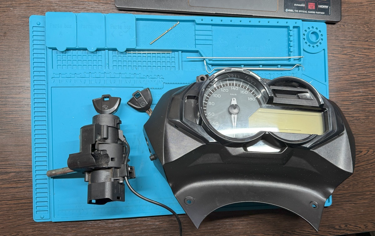 Обратился клиент — потерял последний ключ от максискутера BMW C650GT. Многих сильно удивляет, что на этих скутерах ключи с чипом. Чип — это маленькая семечка внутри ключа, которая содержит информацию внутри себя. У каждого чипа есть уникальный ID, а также правильные «ответы» на меняющиеся запросы блока управления. Работает за счёт магнитного поля, создаваемого катушкой, которая находится на замке зажигания. Батарейки чипу не нужны, внешне ключ выглядит как самый обычный. Нужно понимать, что после 2005 года большинство мотоциклов оснащены иммобилайзером. Сложность — разная. На каких-то мотоциклах можно подключиться через диагностический разъём дорогим или не очень дорогим оборудованием, на каких-то — необходимо вскрывать блок управления двигателем или иммобилайзером, а на каких-то — просто заказывать новый ключ с завода, так как вариантов восстановления может просто не быть (однако таких всё-таки меньшинство).