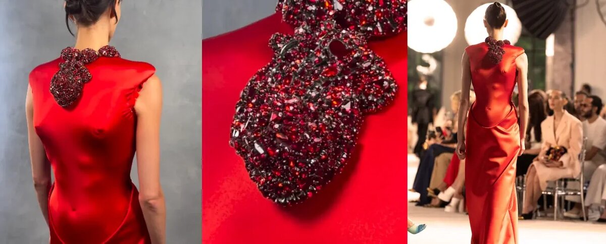 Дом моды Schiaparelli вновь поразил мир, представив на открытии Недели высокой моды осень-зима 2025-2026 коллекцию, балансирующую на грани искусства и провокации. Центральным элементом показа стало ожерелье в форме человеческого сердца, которое буквально пульсировало в такт шагам модели. Коллекция "Retour vers le futur" ("Назад в будущее") от креативного директора Дэниела Роузберри включает: Французская модель Жанна Кадье предстала в малиновом платье, надетом задом наперед, с пульсирующим сердцем-ожерельем на спине. Украшение, полностью усыпанное красными стразами, синхронизировало свои "удары" с ритмом подиума. Этот необычный аксессуар продолжает традиции сюрреалистических экспериментов основательницы бренда, которая в 1930-х годах создавала: "Мы хотели, чтобы мода задышала в ритме безграничного воображения", — поясняет Роузберри. Коллекция одновременно отдает дань наследию бренда и предлагает его футуристическую интерпретацию. наш сайт: https://muizre.ru/