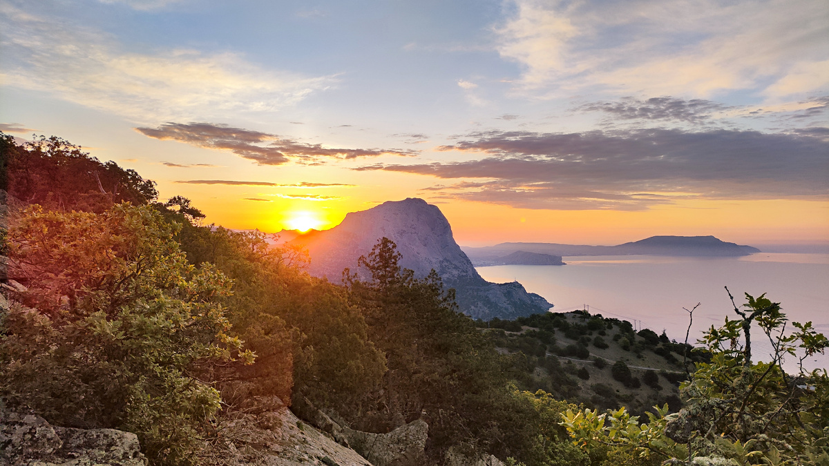 Хоть и очень хотелось спать, но еще больше хотелось встретить рассвет на Караул-Оба. Поэтому я волевым усилием вытащила такие себя из палатки, и побежала на обрыв, с которого открывались просто роскошные виды на гору Сокол, Новый Свет, мыс Капчик, Черепаху, Меганом и Алчак… Посмотрите сами, какая же тут красота!