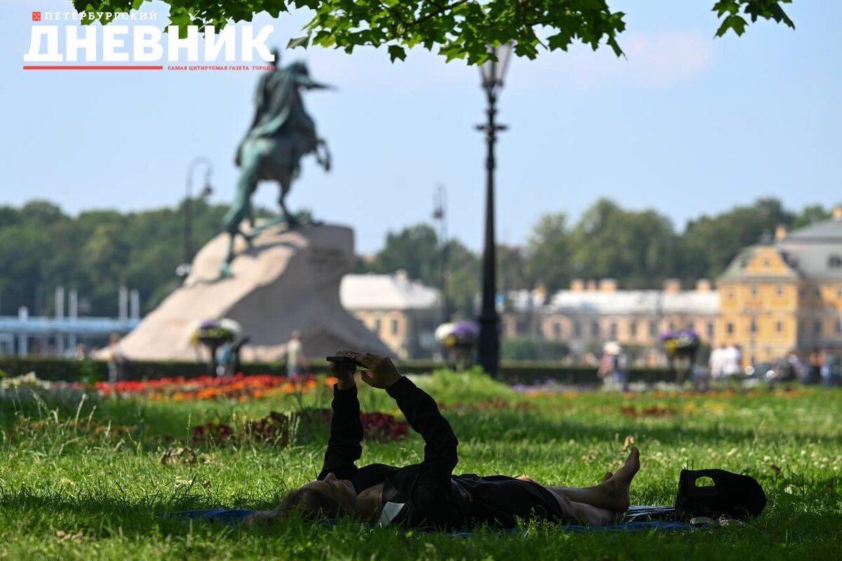 В Петербурге температура приближается к +30, но это не останавливает горожан и туристов — улицы и набережные полны людей, наслаждающихся долгожданным солнцем.