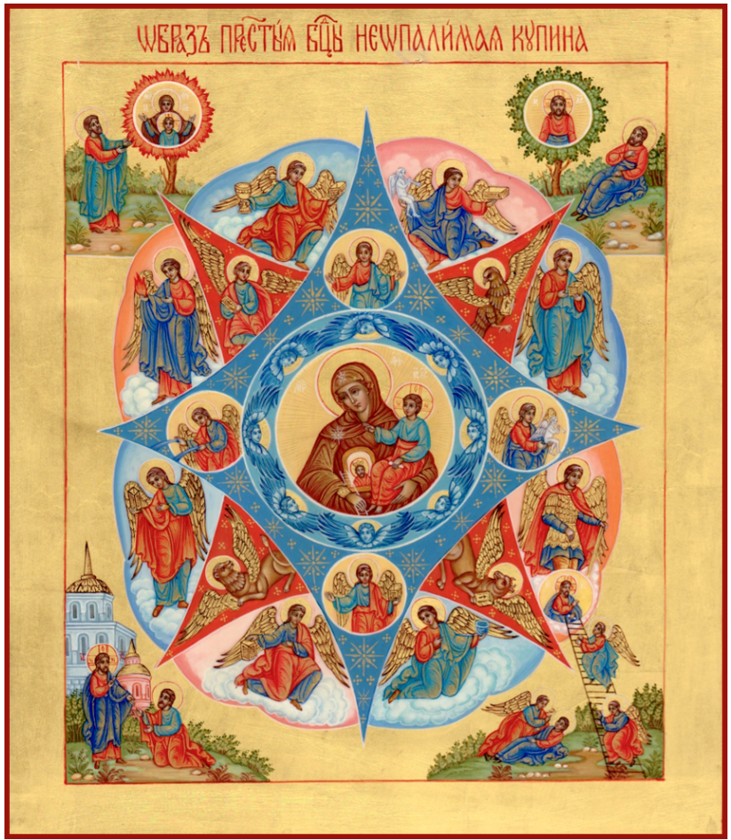 Икона Божией Матери "Неопалимая Купина" остается для нас образцом неизреченного чуда соединения божественного и человеческого, напоминая о том, что Богородица есть несгораемый куст, через который нам явился Неопалимый Божественный Огонь.