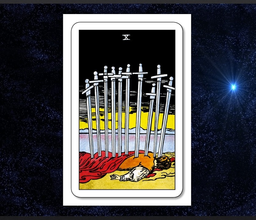 10 мечей олицетворяет конец, распад, подведение черты. К своему завершению могут подойти хорошие обстоятельства или разрушатся важные связи. Но ровно также может закончиться и неблагоприятный период, придет избавление от дурных привычек и токсичных привязанностей.