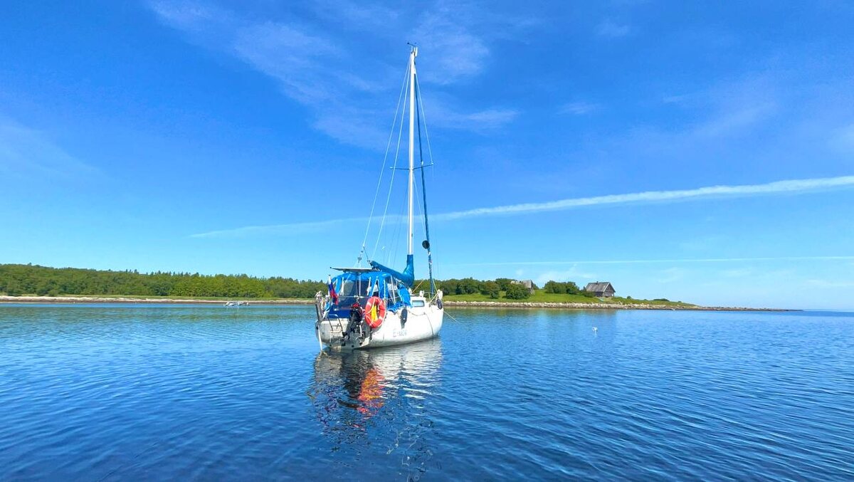 13.07.2025 Переночевали в начале Троицкой губы острова Анзерский. Губа уходит далеко в глубь острова, но туда не пройти. Мели и гряды камней. Ожидали, что бухта будет более закрытой. Но нет. От северного ветра в ней не спрятаться (к счастью он быстро стих). Нашу постановку на якорю в ночи (напомню, они здесь белые) сопровождал тюлень. Долго крутился вокруг, пока мы не закинули оба якоря. Утром отправились на тузике вглубь губы к Свято-Троицкому скиту. Да не тут-то было. Встречное отливное течение сводило все усилия на нет. Зато посмотрели на местных медуз и морских звезд. Вытащили тузик на берег. Пошли пешком. Сразу нашли дорогу к скиту, которая была указана на старой карте, сфотографированной в Соловецком монастыре несколько дней назад. Кстати, карта оказалась очень точная ☝️ Дорога идет через лес невероятной красоты. Шли часа два. По пути нашли мелководный причал, с аэролодкой на воздушной подушке, попили из колодца. Встретили целого одного человека (кажется, он удивился нам ещ