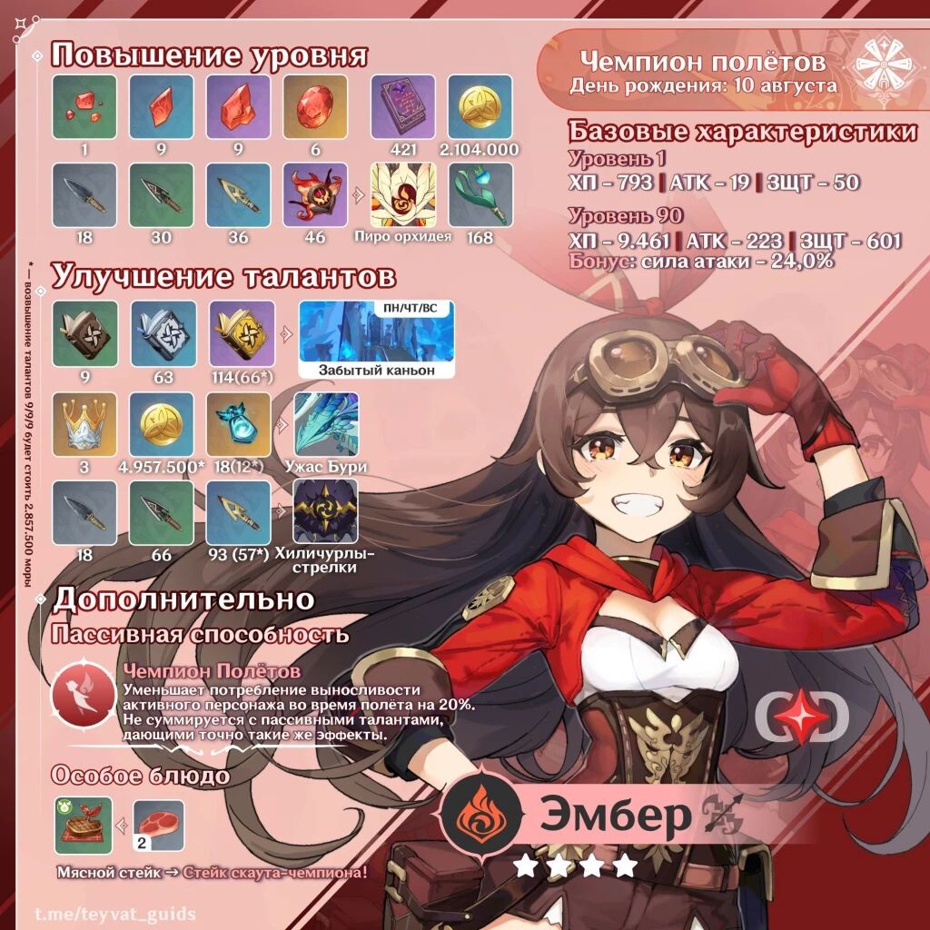 ㅤТак как Эмбер может выполнять роль основного дамагера или саб ДД, то прокачка зависит от выбранной вами роли.