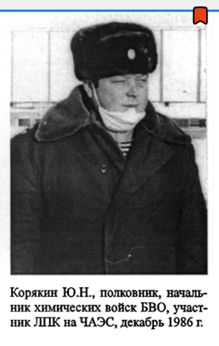 Командир одного из батальонов подполковник Карлин Леонид Евгеньевич, ныне начальник войск РХБ защиты 1-ой Гвардейской танковой армии, три раза выходил на аварию со своей частью в период 1986-1988 гг.