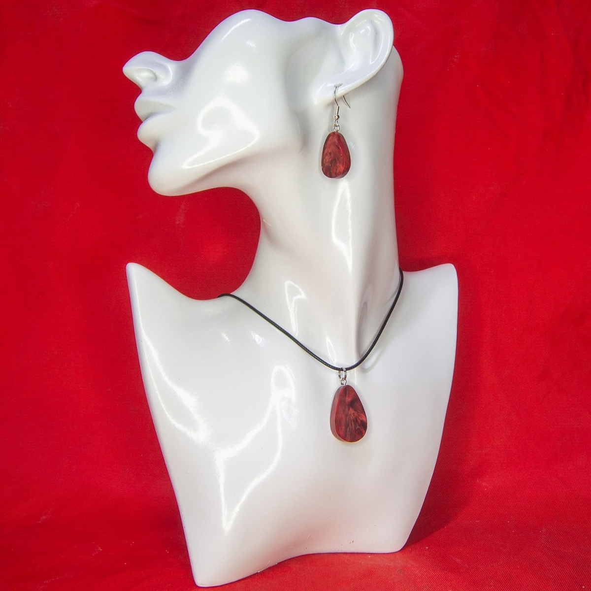 Комплект серьги и кулон из стабилизированного капа клена красного цвета