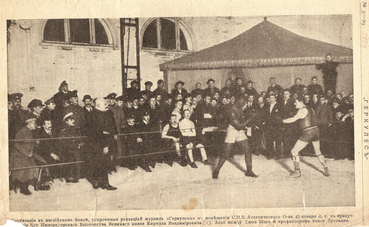 «И всё это происходит ранней весной 1897 года, то есть более чем за год до той даты, которая теперь принимается за отправную точку в истории нашего бокса. Очевидно, можно говорить только о московском, но не о петербургском дебюте этого вида спорта. Ведь в те дни, когда москвичи уже вовсю «болели» на матчах бокса в Манеже, Лусталло только-только обосновался в Петербурге, а Гвидо Мейер ещё не получал у него свои первые начальные уроки боя в перчатках».