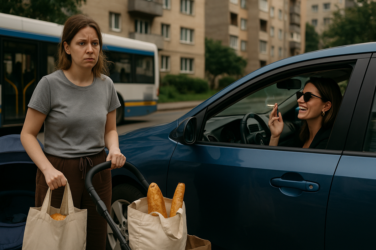 На третий день жизни без машины, Анжела уже почти не чувствовала пальцев от постоянного ношения коляски и сумок. Каждый выход из дома с малышом был похож на марафон: пересадки, ожидания, духота, косые взгляды в автобусах. Всё время в голове вертелась одна мысль: