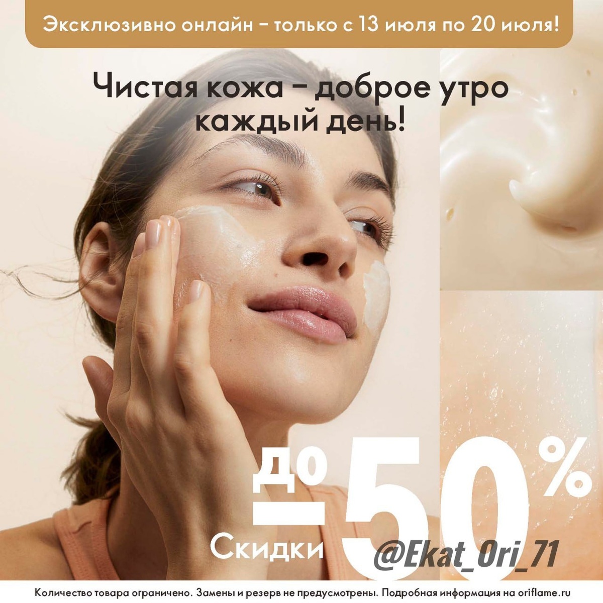 В период с 13 июля по 20 июля включительно в разделе «Эксклюзивно онлайн» вы найдете широкий выбор средств для очищения и сияния вашей кожи со скидками до 50%.