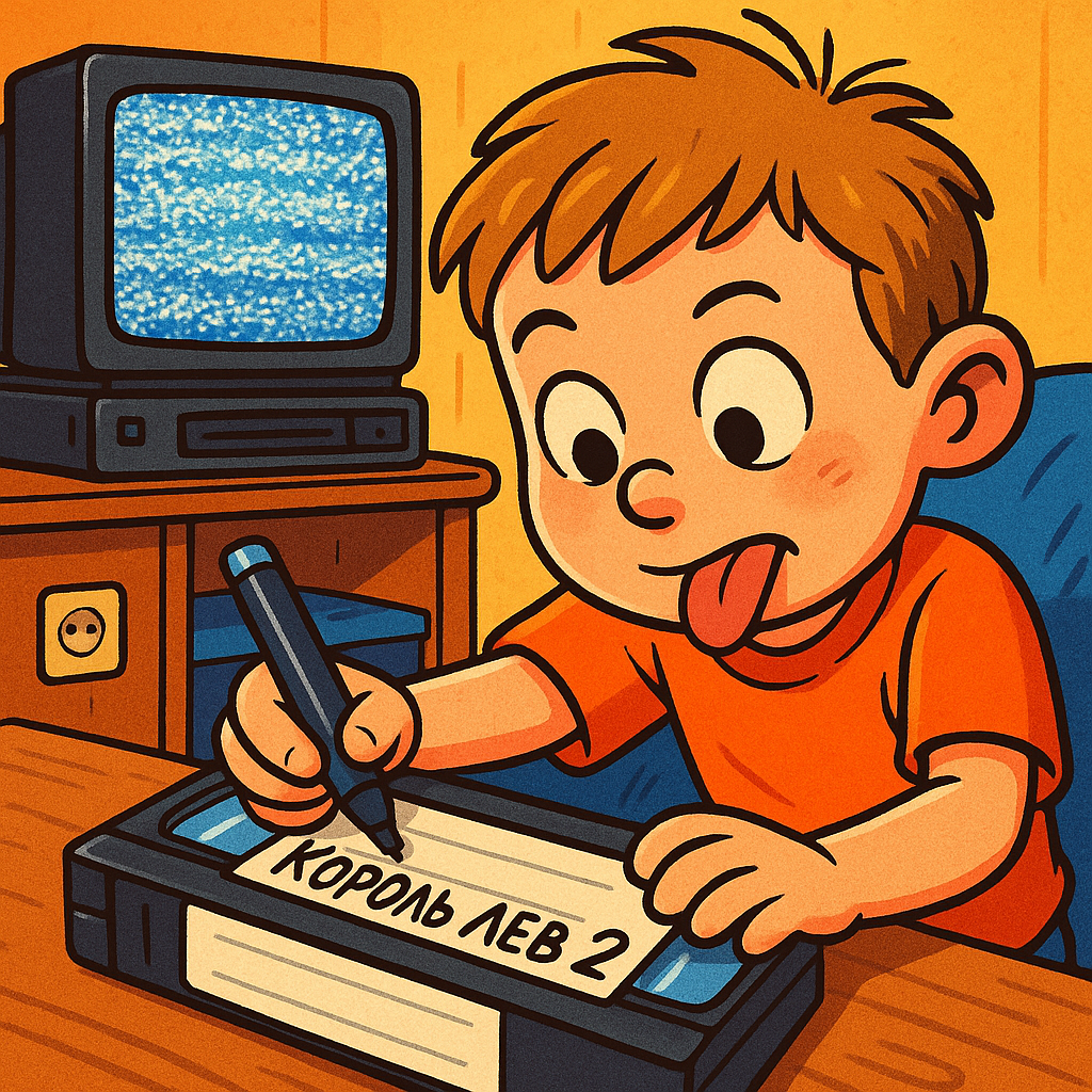 📼 «Как я пытался сделать «Короля Льва 2» на пустой кассете — магия VHS, которой больше не будет» Родился я в 1994-м — вроде бы и «новое время» наступало, но видеокассеты ещё были святыми реликвиями почти в каждом доме. Лицензия стоила каких-то безумных денег, поэтому у всех были пиратки или — ещё веселее — самописные копии пираток. Отец таскал их с работы пачками: какие-то боевики, комедии, мультики — всё подписано его мелким, для меня тогда ещё непонятным почерком. И вот я, пацан лет пяти-шести, сидел и смотрел «Короля Льва». Пересматривал раз двадцать — до хрипящего звука, до полос на экране. Потом решил, что хочу продолжение. Логика детская: если фильм появляется, когда на кассете написано его название, значит, надо просто взять пустую и подписать. Так у меня появилась своя первая VHS с надписью «Король Лев 2».