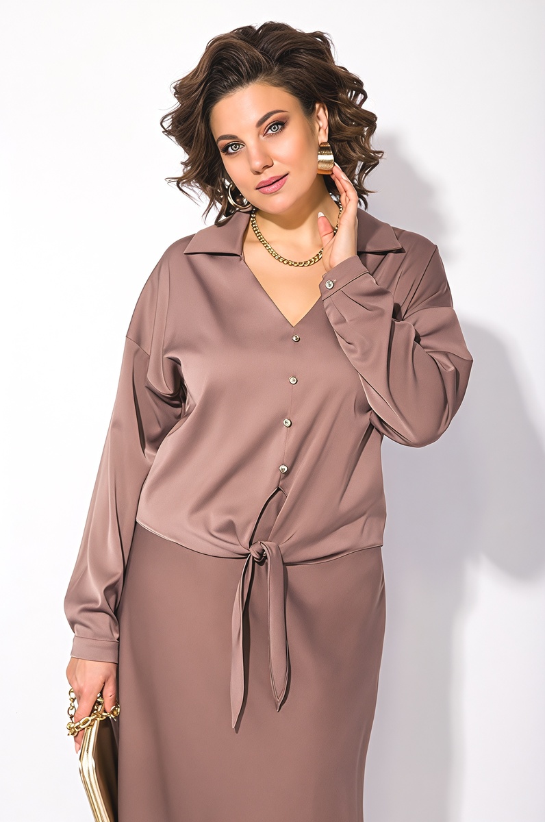 Хотите стильную альтернативу чёрному? Присмотритесь к оттенку mocha mousse — мягкий, тёплый шоколад, который сохраняет всю благородную строгость, но выглядит гораздо легче и свежей. Он не «глушит» лицо, а наоборот — делает его мягче, теплее. Попробуйте заменить привычный чёрный жакет на шоколадный — и сами увидите, как образ становится элегантным, но без тени мрачности..