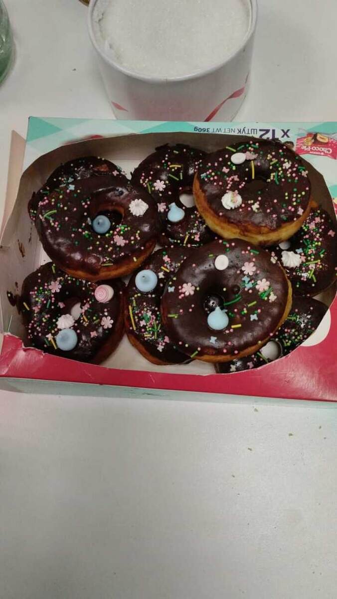 Стакан молока (250 мл 2 яйца 100 г сливочного масла 1 ст ложка сухих дрожжей Щепотка соли 100 г сахара Муки примерно 600-700 гр Ванилин пакетик. Все ингредиенты соединяем, масло нужно растопить, вымешиваем, чтобы тесто отлипало от рук. Убираем в теплое место до увеличения в обьеме в 2-3 р. У меня занимает час, полтора. Стол нужно припылить мукой, выложить тесто, раскатать в пласт 1, 5-2 см, формочкой или стаканом вырезать пончики и обжарить во фритюре. Можно заморочиться и сварить глазурь, а можно растопить шоколадку, обмакнуть пончик и украсить посыпкой. Куличи пасхальные.