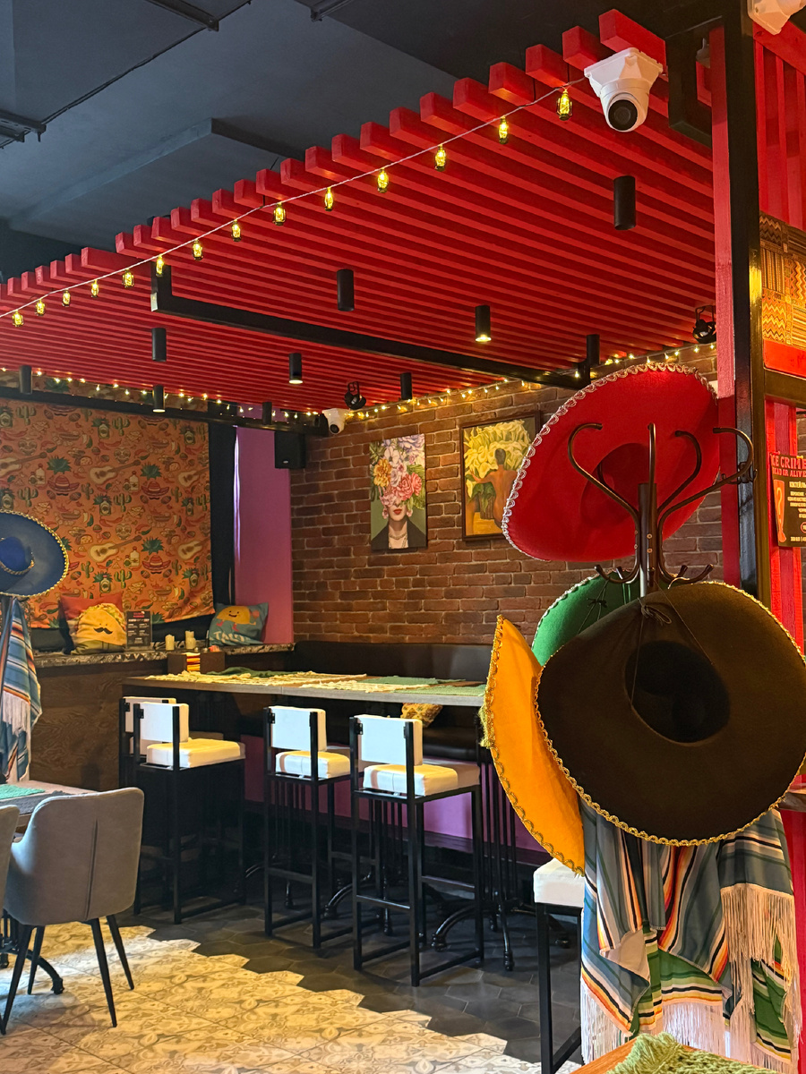 Ходим по проторенным дорожкам, ведь любимые кафе встречают своими традиционными блюдами. Так и оказались дальневосточные дегустаторы в баре-бистро «Mexico”. Я думала, мне нравится своим звучанием итальянский или французский.. Похоже, что меню разных стран заслуживает своего внимания (русское естественно в приоритете). Выдают перчатки для удобства. Заказывали не острое, а так там перец чили почти везде. Один соус оказался островатый, но тем не менее в самый раз. Вот это я понимаю! Фон и дизайн для меня важны. Померили разные наряды. Погружение в другую культуру полным ходом, как я и люблю. Я вспомнила мексиканские сериалы давних времен: «Дикая роза» с Вероникой Кастро. «Просто Мария».(я даже не только подпевала когда-то, но и подбирала на пианино мелодию к начальной песне.) «Богатые тоже плачут». Ведь смотрели же. В общем, хорошо посидели. Цитрусовый лимонад неплохо нас охладил после жаркой улицы.. Стало вечереть и можно продолжить летнюю прогулку. Думаю, может сериальчик ка