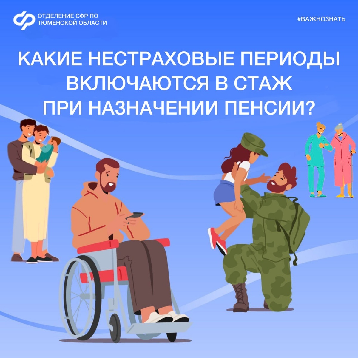 ✅ При назначении страховой пенсии в стаж, помимо трудовой деятельности, также включаются нестраховые периоды, представляющие собой социально значимую деятельность. К ним относятся: - уход за детьми до 1,5 лет - службу в армии - уход за нетрудоспособным 🗓 За каждый календарный год этих периодов устанавливается индивидуальный пенсионный коэффициент (ИПК). Например, за год ухода одного из родителей за первым ребенком до 1,5 лет накапливается 1,8 ИПК, а участие в специальный военной операции учитывается в двойном размере – 3,6 ИПК. 📲 Полный перечень нестраховых периодов и соответствующие им пенсионные коэффициенты можно найти на сайте СФР. 📍Важно! Нестраховые периоды засчитываются в стаж лишь в том случае, если до или после них имелось официальное трудоустройство. Подписывайтесь на 👉 Отделение СФР по Тюменской области, чтобы знать всё о формировании пенсии. #СФР #пенсия #стаж