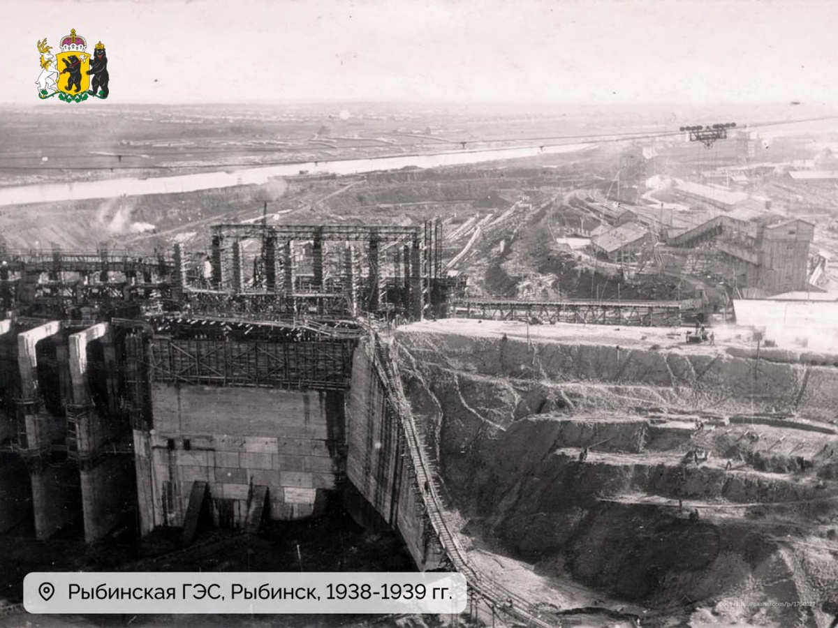 На редком архивном фото — масштабная стройка Рыбинской ГЭС на реке Шексне.