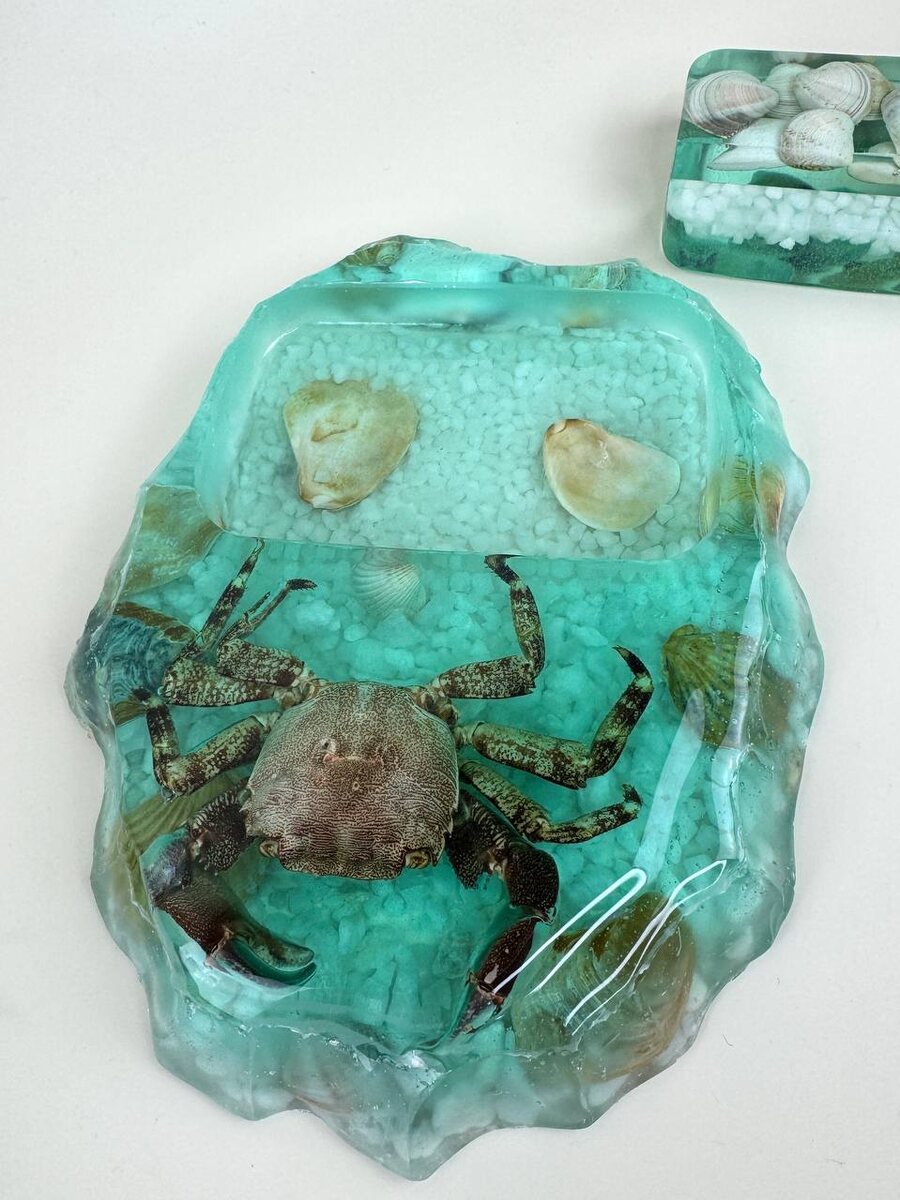 🦀Краб в смоле? Сначала я была против того, чтобы заливать цветы в смолу. Теперь вот залила 🦀 . Мне он достался уже высушенным. Хозяин очень им дорожил и попросил залить красивую подставку под телефон. (Я уже рассказывала как реализовывала этот проект) Подставка получилась из двух частей - основа с крабом и съемная часть с ракушками. Как пазл🧩 Каждый раз, глядя на ещё одно изделие из смолы, понимаешь: эпоксидная смола - это не просто материал, это способ упаковать воспоминания и эмоции в прозрачную магию. Кто еще хочет, чтобы их телефон жил у моря? 🐚 ________________________ #dekor_epoxy #epoxy #декор #decor #эпоксиднаясмола #декордлядома #море