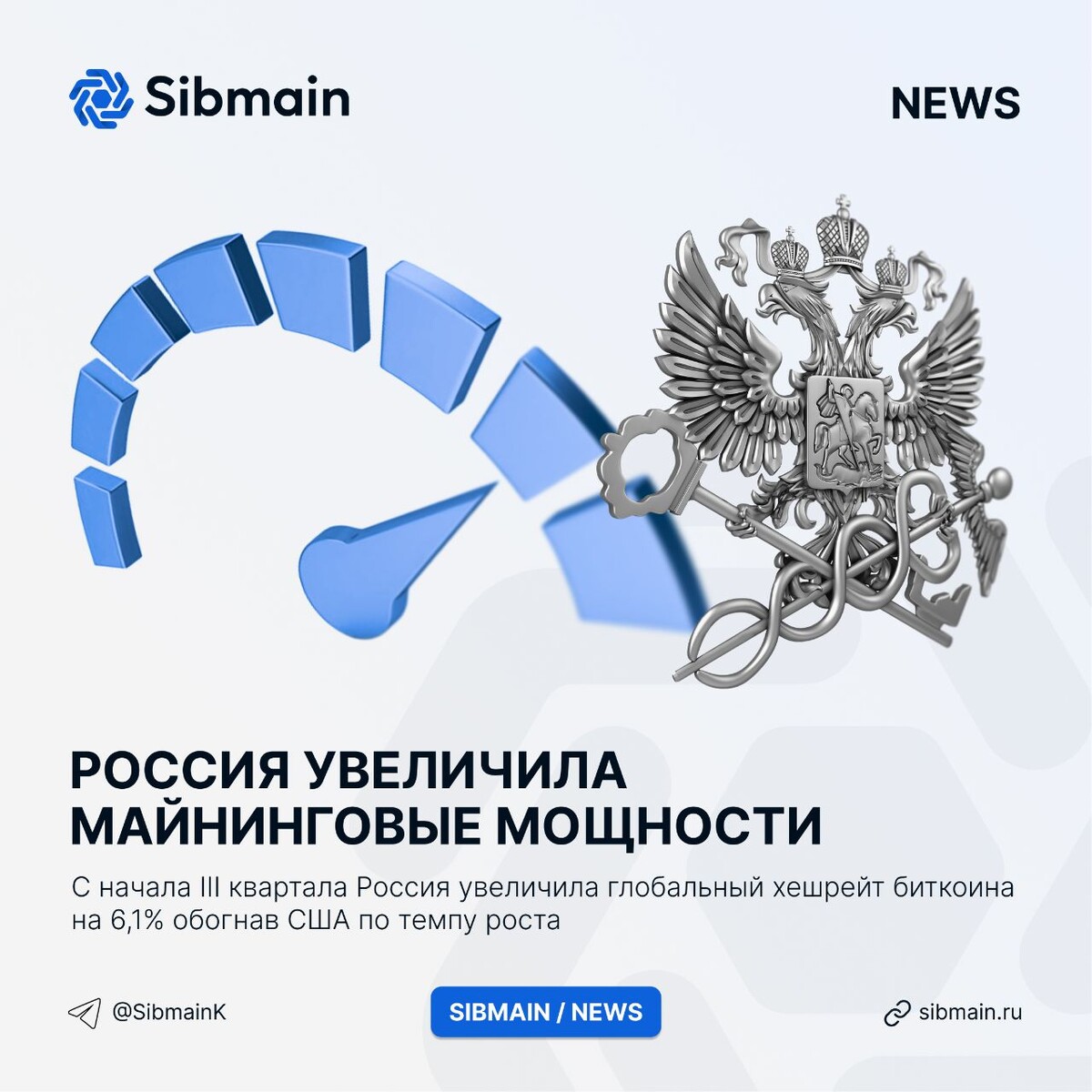 📰📰📰📰 ➡️Россия увеличила майнинговые мощности C начала III квартала Россия увеличила глобальный хешрейт биткоина на 6,1% обогнав США по темпу роста. Лидеры по глобальному хешрейту: ⏺США - 323,4 EH/s; ⏺Россия - 150 EH/s; ⏺Китай - 125 EH/s 📍Россия быстрее наращивая мощности чем США сможет побороться за лидерство при ускорении развития отрасли