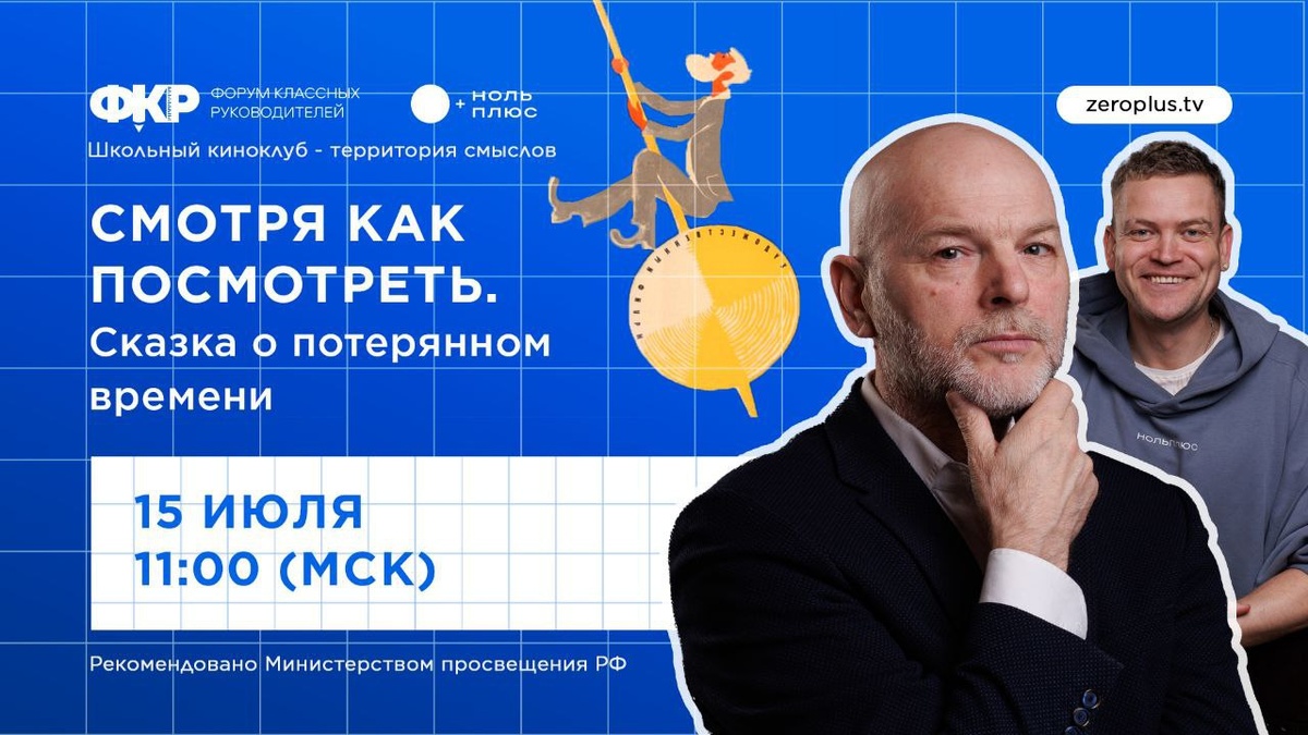 🟧🟧🟧 Совсем немного, и начнем. Менее чем через два часа стартует эфир киноклуба по «Сказке о потерянном времени» — легендарной ленте, которую с удовольствием смотрели несколько поколений жителей нашей страны. И дело не только в спецэффектах: в фильме немало глубоких и мудрых посылов, которые будут полезны детям*. Ждем вас в комментариях ❤️ ⚡️ Вторник, 15 июля, 11:00 по московскому времени ⚡️ Онлайн-киноклуб «Смотря как посмотреть» ⚡️ Фильм «Сказка о потерянном времени» Напомним, «Сказку о потерянном времени» Министерство просвещения рекомендует показывать в 1-4 классах. Чему она может научить младшеклассников, стоит ли смотреть картину ребятам постарше и как организовать школьный киноклуб, вместе с вами обсудят Николай Данн и Пётр Агеев. Площадки трансляции 👇 🌐 ВКонтакте 🌐 Rutube 🌐 YouTube Встреча состоится при поддержке Форума классных руководителей, Росмолодежи *Тайм-менеджмент — еще не всё 😉 #новости_кинопедагогики #практическая_кинопедагогика #росмолодежь #Росмолодеж