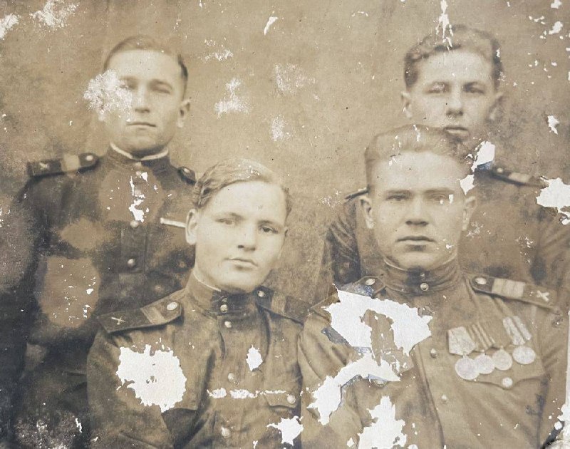 Снимок из раздела «Неизвестный солдат» «Нашел фотографию, когда разбирал семейный архив. На фотографии четыре военнослужащих из сержантского состава. На обороте фотографии - указаны фамилии каждого из в/с. Может кто узнает своих родных…» Если вам что-то известно о людях, изображенных на снимке, оставьте комментарий на сайте – moypolk.ru/soldier/unknown/show/5973 Давайте поможем неизвестным бойцам обрести имена. 🕊 @moypolk