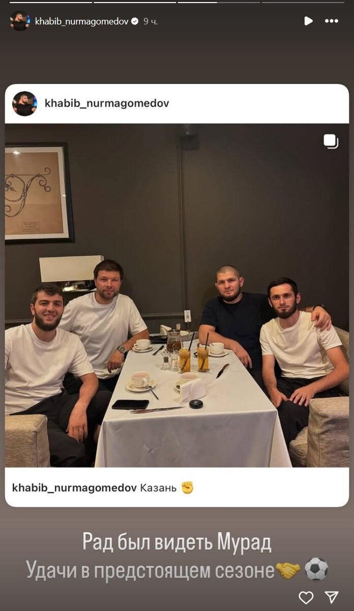 🍽 Нурмагомедов встретился в Казани за ужином с главным тренером «быков» Мурадом Мусаевым.