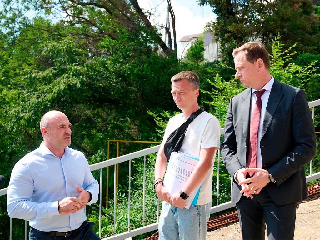 В понедельник, 14 июля, место ЧС посетили специалисты профильных департаментов городской администрации во главе с мэром Сочи Андреем Прошуниным. Обеспокоенность продолжающейся подвижкой грунта выразили местные жители на личном приёме у градоначальника в июне. Оползневый процесс у дома №18 по улице Шаумяна активизировался в январе 2020 года. Был введён режим чрезвычайной ситуации муниципального уровня. С тех пор здесь ведутся работы по устранению последствий и предотвращению дальнейшего осыпания грунта. Подрядчик повторно проведёт инструментальное обследование склона. По результатам станут понятны необходимые меры и определены дополнительные источники финансирования, рассказали в администрации курорта. Фото: Администрация Сочи