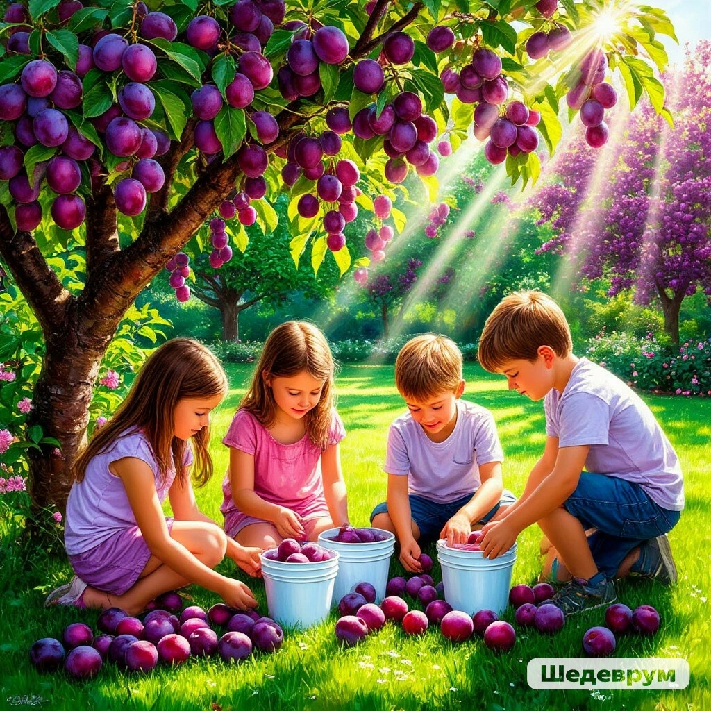 - Вот они, два дерева уродили. Вы в ведерки-то рвите, а то что нападало, то кушать можно, их не кладите. Шесть нарвете, все остальное можно и себе оставить, бабушки, поди компот наварят. Алыча, нынче, только у меня народилась.