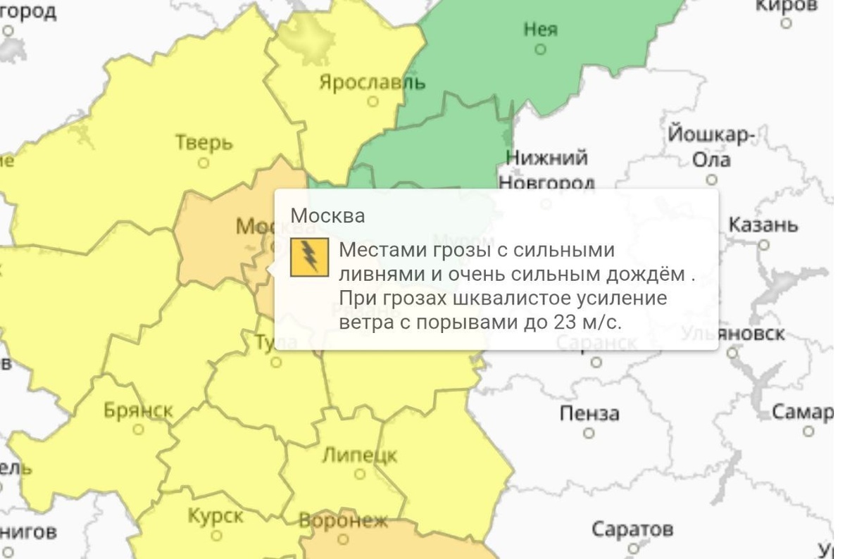 ‼️В Москве и области объявлен оранжевый уровень погодной опасности из-за гроз, ливней и шквалистого ветра