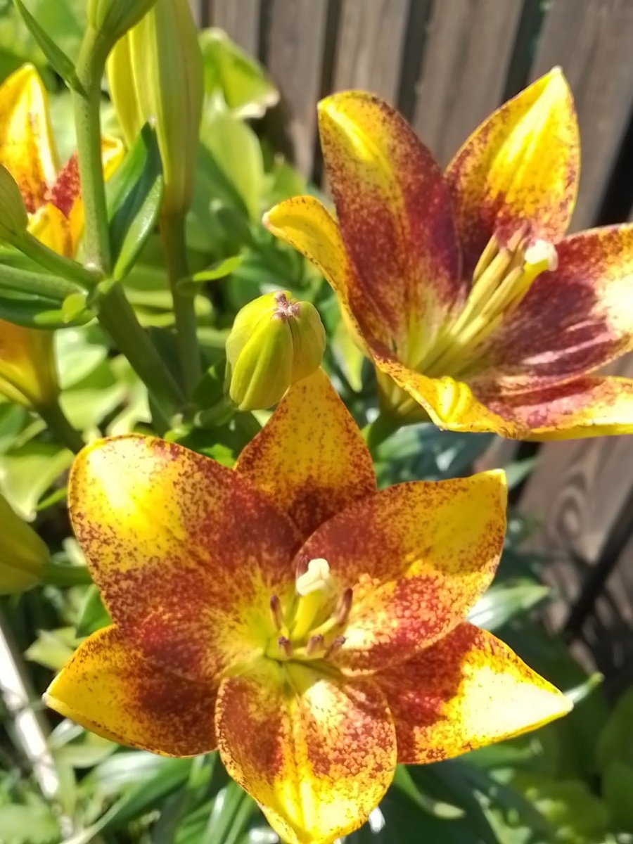 Доброе сибирское! У нас сегодня прохладно, 19 градусов дует освежающий ветер. И снова у меня распустилась новая лилия, желтая в бордовую крапинку. Ну красавица же! И остальные тоже радуют своим цветением! Любуемся!