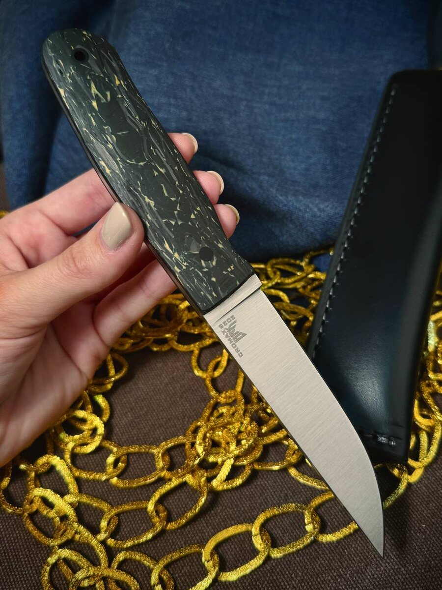 Легкий и маневренный фикс с агрессивным резом – финочка «Локки». Клинок выполнен из стали Cromax, а на рукояти накладки из карбона. В комплекте ножны из кайдекса. Общая длина: 202 мм Длина клинка: 101 мм Толщина обуха: 2.6 мм. ‼️Вести диалог только с @burlax1