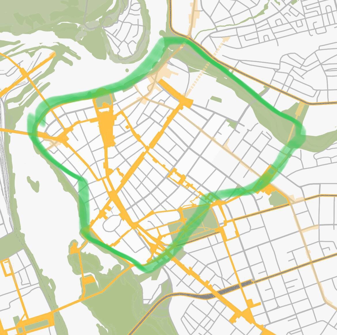 🪵🪓 Как админресурс лишает город Иркутск «Зелёного диаметра» Тема преступной обрезки деревьев в Иркутске, в частности недавняя вырубка рощи на перекрёстке Седова и Красных Мадьяр, вывела меня на более обширную проблему. Иркутск по факту уже лишился ранее отражённого в градостроительной документации так называемого «Зелёного диаметра»‼️ Это не просто картинка, а выработанная экспертами и архитекторами ещё советского времени стратегия развития города. Это дело рук Павлова, Воронежского и многих других архитекторов с большой буквы — тех персон, которые тогда ставили в приоритет именно город, а сегодняшняя элита ставит в приоритет свой коммерческий интерес. Логика была создать и сохранить зелёное кольцо в центре Иркутска с выходом к Ангаре. На втором рисунке мы обвели для вас границу этого зелёного пояса центра города. И важно отметить, что «Зелёный диаметр» был отражён в градостроительной документации, а именно в генплане. То есть это не концепция, а официальный документ, изменить кот