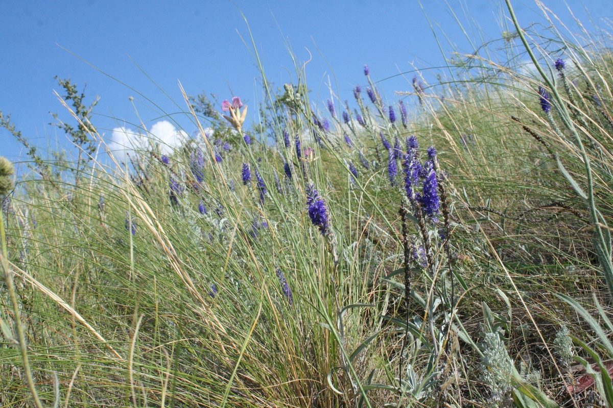 Я фотографировал веронику седую. Пытался поймать в кадр, как строчка сиреневых растений, посверкивая серебристым опушением, убегает по степному холму вверх и намеревается раствориться в лекарственном июльском небе. А Лариса, талантливый фотограф из Екатеринбурга, снимала меня, как я изображаю ящерицу творческую и тоже пытаюсь подползти к земной границе небесного… А заодно перебраться через экватор такого замечательного нынешнего лета.