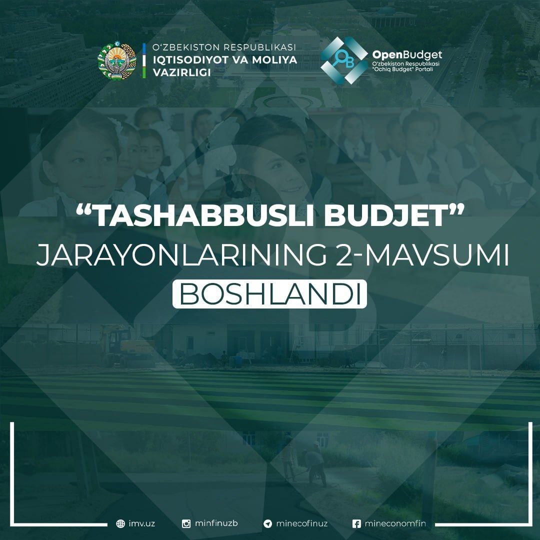 “Ташаббусли бюджет”нинг 2-мавсуми бошланди Бугун, 15 июлдан “Очиқ бюджет” порталида 2025 йилги 2-мавсум учун лойиҳаларни киритиш жараёни бошланди. Жараёнлар тақвими: 1.Лойиҳа киритиш: 15 июль – 3 август; 2. Саралаш: 4 – 18 август; 3. Тарғибот: 19 – 21 август; 4. Овоз бериш: 22 – 31 август. Каналимизга обуна бўлинг ва энг сўнгги янгиликларни кузатиб боринг. Jizzaxnews |Тelegram | Facebook | Dzen | YouTubе