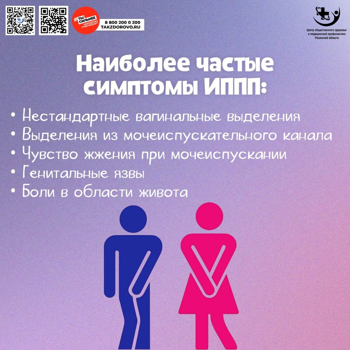 🔔 Началась Неделя профилактики ИППП! Тревожные симптомы, которые нельзя игнорировать: 🔥 Самые частые признаки ИППП: У мужчин и женщин: Необычные выделения (желтые, зеленые, с неприятным запахом) Зуд и жжение при мочеиспускании Сыпь, язвочки, пузырьки в паховой области Боли внизу живота (часто при хламидиозе, гонорее) Особые симптомы у женщин: Кровотечения между месячными Болезненность во время секса Особые симптомы у мужчин: Боль в яичках Белый налет на головке полового члена ⚠ Коварство ИППП: • 50% инфекций сначала протекают БЕЗ симптомов • Хламидиоз может "молчать" годами, вызывая бесплодие • ВПЧ (вирус папилломы) часто проявляется только через 5-10 лет 💡 Что делать? 1⃣ Срочно к врачу при любом подозрительном симптоме 2⃣ Не заниматься самолечением – это усугубляет проблему 3⃣ Обследовать партнера – даже если у него нет жалоб ❗ Помните: Многие ИППП излечимы, если обнаружить их вовремя! #СтопИППП #СимптомыИППП #ПроверьСебя #Здоровоебудущее #Здоровоебудущее62 #Здоровая