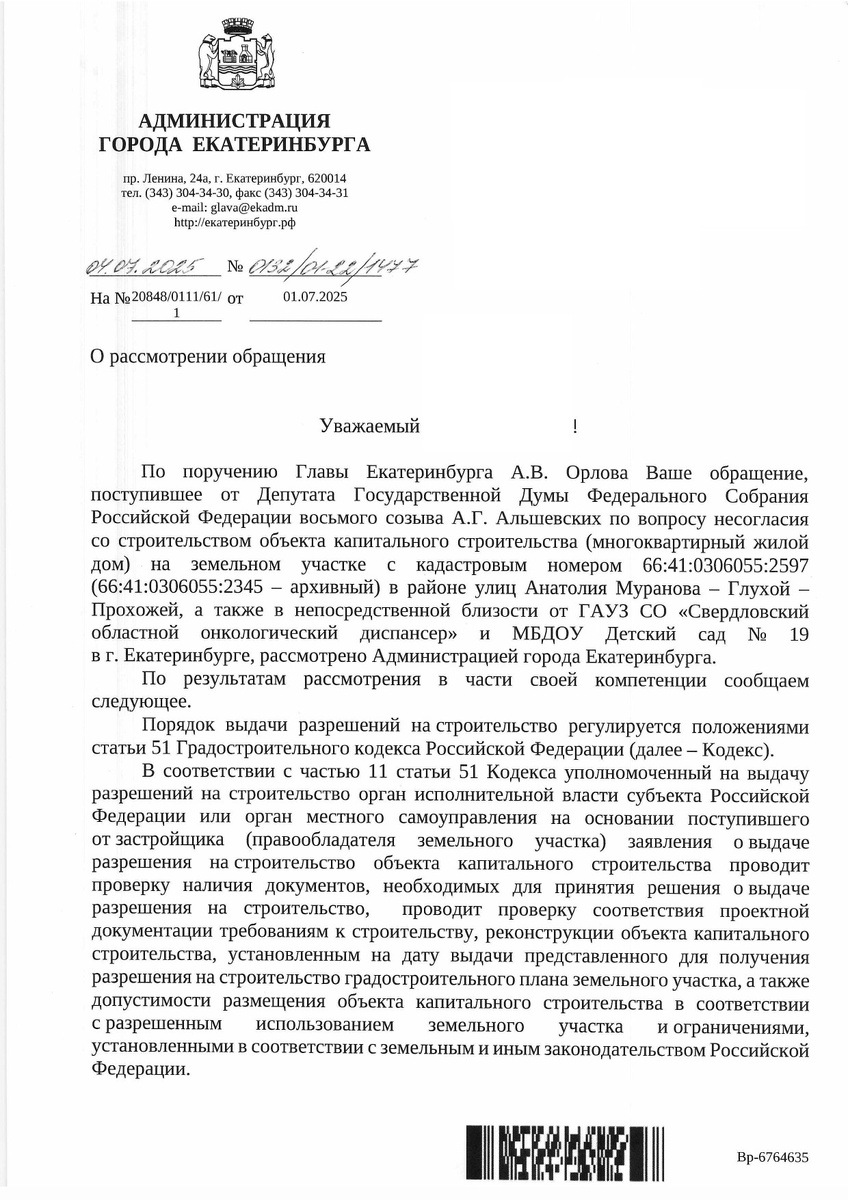 Жители высотки на Анатолия Муранова, 18 прознали, что по соседству, в лесу, намечается стройка. Защищая зеленый уголок, стали бить во все колокола, в том числе прислали жалобу мне. Успел получить ответ от городских властей. Те сообщили, что на данный момент не выдавали разрешение на строительство. Вот только, похоже, застройщик не собирается ждать. На выходных, под покровом ночи, рабочие привезли на место будку для офиса продаж и хотели ее выгрузить. Но не смогли проехать мимо возмущенных горожан. Ситуация явно требует диалога между всеми сторонами.